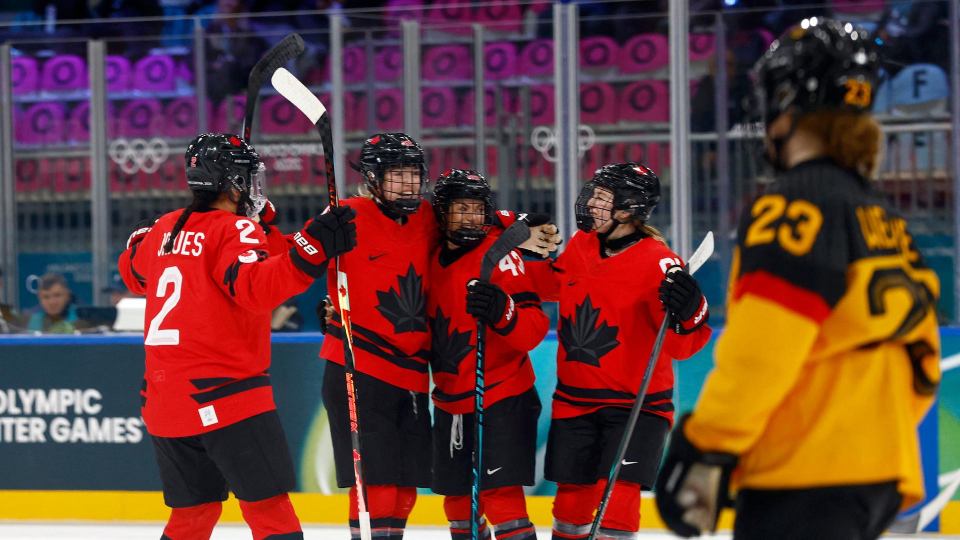 The Canadian women’s hockey team is off to the semifinals at the Winter Olympics after a 5-1 victory over Germany.